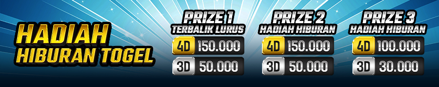 - Hadiah prize 2 : 4D = Rp. 150.000,- / 3D = Rp. 50.000,-